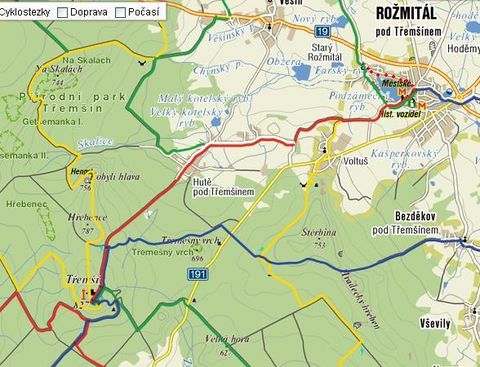 Trasa 1. dne, v pátek 8. 5.: Rožmitál pod Třemšínem ČTZ – Třemšín MTZ – Starý Smolivec – Metly – Újezd u Kasejovic – Bouček – Kasejovice = asi 34 km