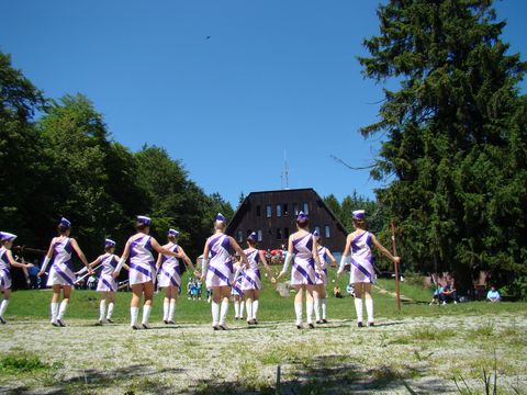 Předpokládali jsme, že příchozí uvítají po dobrém jídle i duchovní osvěžení, a proto jsme zajistili vystoupení 26 mažoretek z Větrného Jeníkova. Děvčátka vystoupila s naučenou sestavou dvakrát a svou přítomností ozdobila a rozjasnila odpoledne – skoro do lesku.