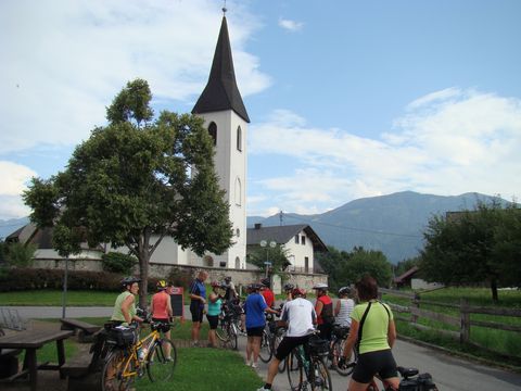 Necpali jsme si do hlavy žádná historická fakta, jen jsme bezmyšlenkovitě jeli a užívali si tu nádheru kolem. Představte si ten nejbarevnější kalendář s horami, zalesněnými kopci, loukami se stády Milek, květinami, se stříbromodrou stuhou řeky lemovanou stromy, starými či moderními mosty, s přepečlivě udržovanými statky, přívětivými městečky a vesnicemi se zdaleka viditelnými kostelními věžemi – a jakoby jste byli s námi v údolí řeky Gail.