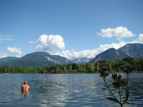 a my jsme věděli, že ji musíme opustit, abychom odbočili na sever ke Klagenfurtu (česky Celovec). Měli jsme před sebou výškový rozdíl, a tak jsme osvěžili těla v jezeře, duši v modravých dálkách.
