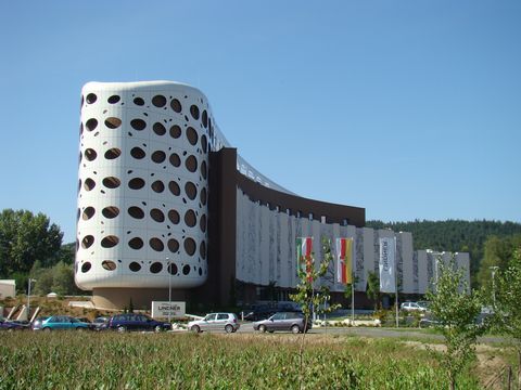 Projíždíme oblastí na jihu Rakouska, kde se stýkají a prolínají germánská, románská a slovanská kultura, což připomíná návštěvníkům před muzeem Svět Keltů trojhranný kámen a listy dubu, platanu a lípy jako charakteristika jednotlivých národů na „Prameni tří kultur“.