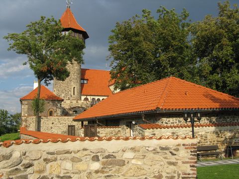 Blízko Domaslavic je městečko Hrob a v něm základy rozbořeného protestantského kostela, postaveného v roce 1614. V prosinci roku 1617 byl nový kostel srovnán ozbrojenci oseckého hejtmana se zemí, což byla záminka pro započetí třicetileté války – to mi přišlo jako závažná historická vysvětlivka!