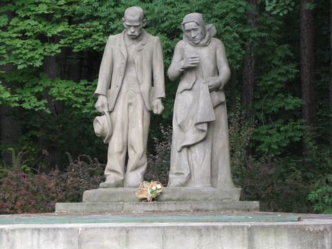 Kvůli pohodlnosti jsme dojeli autobusem MHD asi pět kilometrů z Duchcova do Oseka, tam jsme se vydali po modré turistické značce a hned po ránu tu byla lahůdka – pohled na buk převislý s temně červenou barvou listů byl pro mne fascinující. Rozložitá koruna (prý měří 14 metrů) a téměř čtyřmetrový obvod kmene budí úctu a navíc je 150 let starý strom krásný. Příroda, která vytvořila takové mistrovské dílo, umí ovšem lidi zasáhnout i opačně – vzpomněli jsme na to po pár stech metrech u památníku obětem katastrofy na dole Nelson. Dne 3. 1. 1934 zahynulo při výbuchu 144 horníků. Tak velká tragédie poznamenala celý kraj, rok poté byl instalován pomník autora Karla Pokorného – znázorňuje truchlící rodiče nad tragickou smrtí syna.