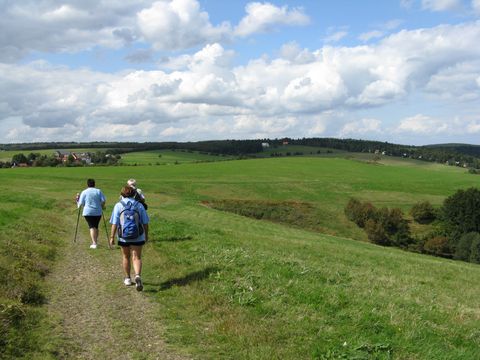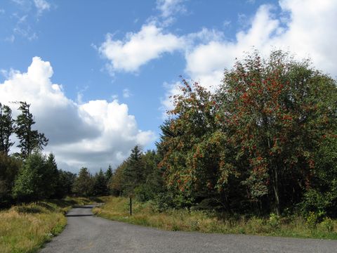 Hřebenová cesta byla příjemná, počasí nádherné, vzájemnost kvetla. Byla jsem ráda, že Miluška neumdlévala v poskytování informací, ale moje paměť asi plní bobříka mlčení – teď ji marně žádám o nápovědu. Pamatuji si jen, že na rozcestí se zelenou značkou, která vede údolím potoka do Domaslavic, mi řekla, že ve strážním domku u obce se narodila Anna Vlčková, pozdější žena prezidenta Edvarda Beneše Hana (1885–1974); jeden z pravidelných pochodů duchcovských turistů nese její jméno.