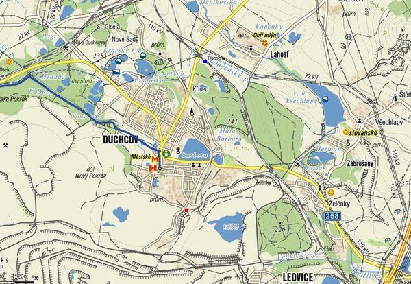 Na přiložené mapce vidíte bílé plochy, což jsou místa dolování. To, co ve starobylém městě zůstalo, stojí ovšem za vidění. Na impozantním náměstí, jehož jednu stranu zabírá zámek, ke kterému byl na začátku 18. století přistavěn děkanský chrám Zvěstování Panny Marie, je několik výrazných sochařských výtvorů, včetně nezbytného Floriánka u kašny a svatých patronů na kamenném sloupu – ani ti však nedokázali zabránit 10. května 1945 vypálení chrámu a zničení vzácných děl Braunových a Rainerových.