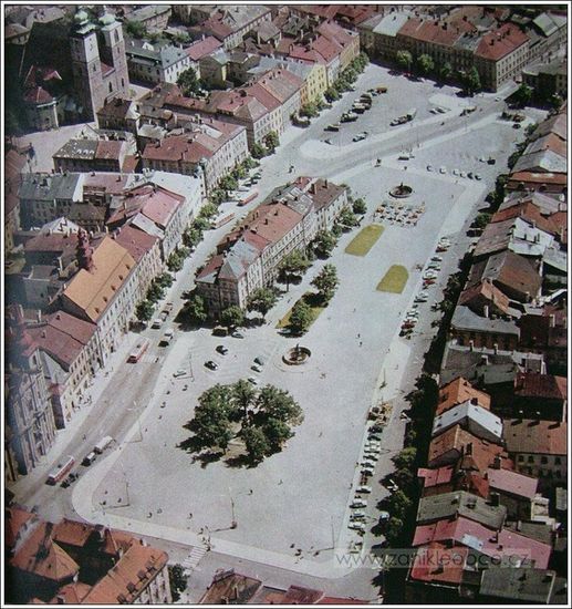 Udělal bych kombinaciVnitřek obdélníku náměstí bych ponechal a spílal by UNESCu, že to nevyhlásil za chráněnou památku, he v začátcích normalizace??!!, ale budovy po obvodu se mi rozhodně líbí dnes víc.