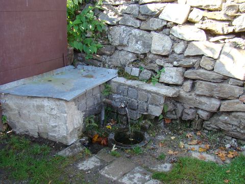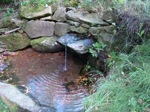 Hned první pramen vody, ke kterému jsme přišli na okraji obce, dostal pro svůj vytrvalý zvonivý zvuk při dopadu na hladinu v kamenné skruži roztomile popisný název U Čuráčku – jen se podívejte: