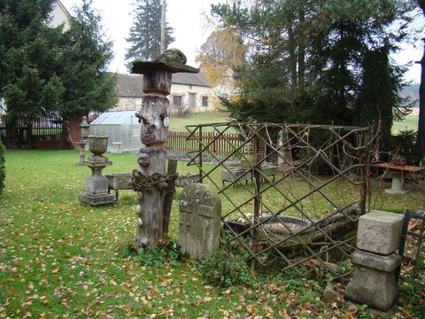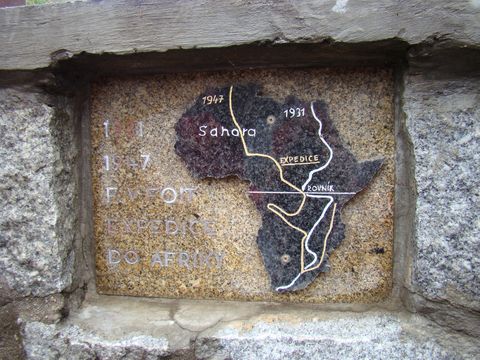 Rozcestník u Roštejna nás nasměroval na žlutou TZ, první vesnice Doupě, schovaná v úžlabině mezi kopci, právem nosí své jméno. Je známá svým (bohužel už bývalým) závodem na zpracování žuly (monolit na hradčanském nádvoří), který v roce 1906 založil Ferdinand Foit, otec sochaře Františka Vladimíra Foita, o kterém jsem se zmínila v telčské části Dolnorakouské výstavy. Syn se nevěnoval rodinnému podniku, přitahovaly ho dálky, v roce 1931 podnikl první africkou cestu, o níž napsal knihu Autem napříč Afrikou, v roce 1947 se vydal s manželkou Irenou na druhou cestu, která kvůli politickému zvratu v ČSR v roce 1948 neměla návratu. Žil a tvořil v Africe, v roce 1971 zemřel při autohavárii ve Slovinsku. Jeho žena se v devadesátých letech vrátila do Telče a sepsala knihu Z Telče do Afriky a nikdy zpět. Věřte, je to moc zajímavé čtení. V Doupí mají zajímavou připomínku Foitových cest: