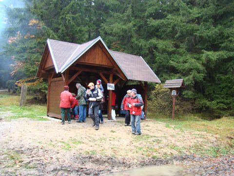 Na rozcestí U obrázku na nás čekala nová lesní chatička a v ní milá pořadatelka s horkým čajem, vlídným slovem a hezkým razítkem do vandrovní knížky.