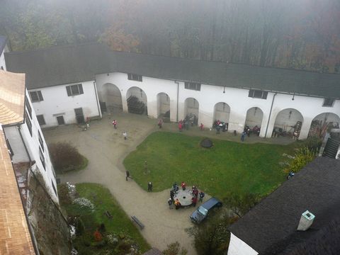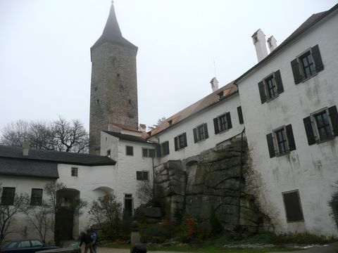 V roce 1915 hrad vyhořel, po rekonstrukci byl pro veřejnost zpřístupněn v roce 1969. Ačkoliv stojí na skalním ostrohu, je skryt v hustých lesích, jen 45 metrů vysoká sedmiboká věž, která se zachovala ve své původní gotické podobě, ční nad vrcholky stromů a je při dobrém počasí zdaleka viditelná. Je třeba vyběhnout po 120 schodech, abychom pod sebou viděli nádvoří a kolem hradu zelené smrkové moře, nyní se zlatými ostrůvky modřínů a buků.