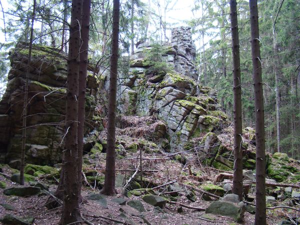 Nedá mi to, abych nenapsala aspoň něco o tomhle krásném koutku země, zařazeném od roku 1984 mezi přírodní památky Jihlavska. Asi 600 metrů dlouhý žulový útvar, v mapách nazývaný Na skalce, je tvořen zvětralými balvany, které svojí divokostí, temnou zádumčivostí, mechovým porostem a odloučením od cest působí na příchozí dojmem dávno zašlých světů a romantickým pověstem o vílách zde žijících se dá klidně uvěřit. Pro svoji zvláštní drsnou krásu vždycky přitahovaly skály odvážné poutníky, velkou oblibu ale získaly v době od roku 1912, kdy byl založen Český spolek pro zimní sporty, v okolí bylo najednou rušno a roku 1913 byla dokonce postavena první chata na nedalekém Čeřínku (asi 3 km). Od roku 1915 do roku 1920 byl předsedou spolku profesor gymnázia v Telči L. Fiala, nadšený lyžař a turista, obdivovatel přírody na Čeřínku, po němž jsou také skály nazývány.