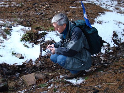 Stoupali jsme úbočím kopce U Oběšeného a ve výšce kolem 700 metrů n. m. jsme došli na prameniště Chrudimky a zanedlouho jsme byli na místě.