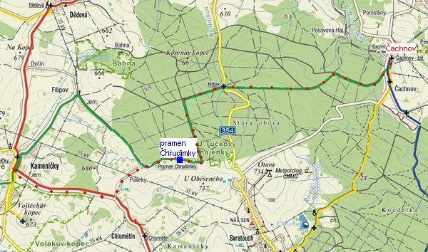 Trasa: Čachnov – Filipovský pramen Chrudimky – Kameničky = 9,5 km (+ pár dalších po Hlinsku)