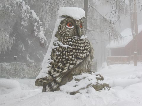 Radost, která se s pohybem (a „kadovánkem“) dostavila, gradovala v nadšení, když jsme v osadě Yukon mezi rybníky Medlovským a Sykovcem spatřili na malém náměstíčku Sovu Michala Olšiaka, pro nás poslední z výtvarníkových soch v přírodě, kterou jsme dosud neviděli.
