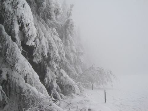 V pátek 19. února byla v Jihlavě dosti hustá mlha, která houstla úměrně se stoupáním k Novému Městu na Moravě a proměnila se v bílou tmu v okolí Studnic, nejvýše položené obce na Vysočině (784 metrů). Autobus odjel, my jsme se ubytovali v nám známé turistické chatě, kde jsme byli i loni a moc jsme si tehdy přáli vrátit se sem, ale příslib avizovaných zážitkových běžeckých tratí byl teď přinejmenším „mlhavý“…