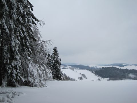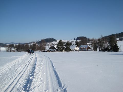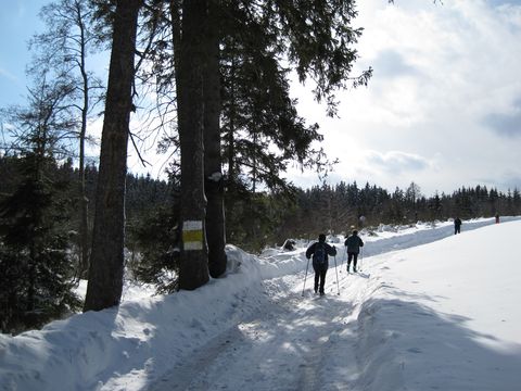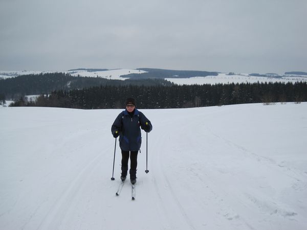 Při celkovém hodnocení terénů jsme oba dospěli k překvapivému názoru, že vysočinské kopečky jsou pro běžkaře namáhavější, protože kratší a strmější, než rozlehlé šumavské pláně (kromě výstupu na Černou horu, kdy mi za krk krátkodobě sedla chandra, kterou tam asi někdo setřásl)