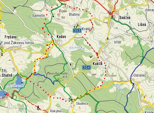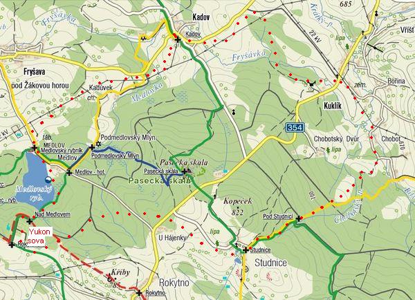 Trasa: Studnice – Chobot – Kuklík – Kadov – Medlov – Yukon – U Martina – Studnice