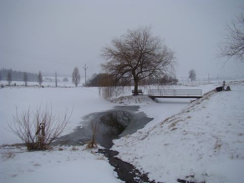 Terén byl zasněžený, ale umrzlý, takže se jít dalo poměrně dobře, vítr pořádně zesílil v otevřené krajině kolem Rosic, které leží na náhorní planině a okolní kopce jsou všechny přes 600 metrů vysoké. Živel na Vysočině všudypřítomný nám ukazoval, kdo je tu pánem, až nakonec rozfoukal a zahnal i padající sněhové vločky.