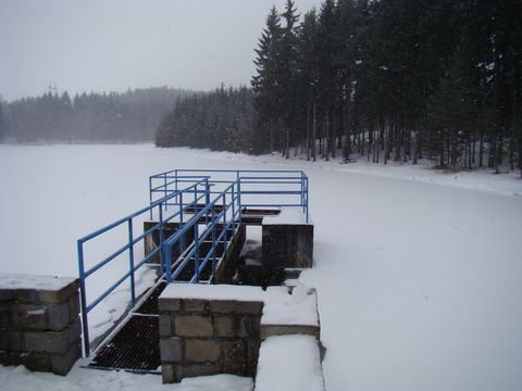 Za Rosicemi jsme nastoupili na cestu, kterou jsme opravdu nikdy nešli a po několika kilometrech jsme v lese uviděli vodní nádrž, o které jsme do té doby neměli ani ponětí.