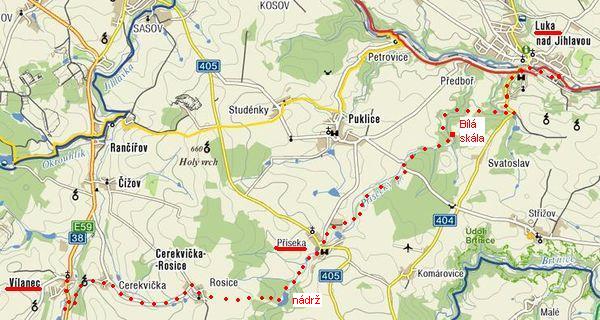 Trasa: Vílanec – Cerekvička – Rosice – nádrž na Příseckém potoce – Příseka – Bílá skála – Luka nad Jihlavou = 16 km