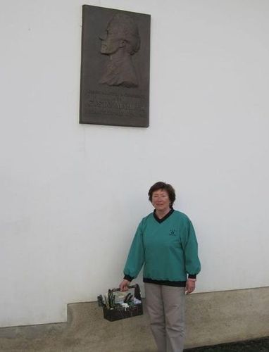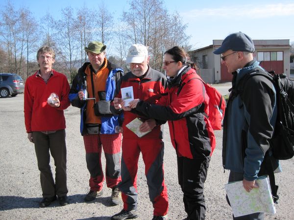 zastavila se u nás skupinka pěti křepkých turistů, kteří nám pochválili práci a zeptali se, zda jsou správně na cestě k Řečici. Přisvědčili jsme a jeden z nich se nám svěřil, že chodí po místech spjatých s osobností Gustava Mahlera podle TTO (turistický tematický odznak) Gustav Mahler a Vysočina a ukázal nám příslušnou brožurku. Rozzářili jsme se, protože jsme spoluautory zmíněného záznamníku a bylo nám dopřáno takové štěstí, že jsme se na Cestě GM, jejíž projití je jednou z podmínek pro získání odznaku, setkali s turisty z Mostu, kteří trávili velikonoce s Gustavem Mahlerem na Vysočině.