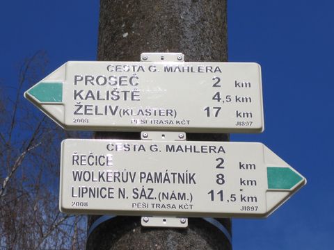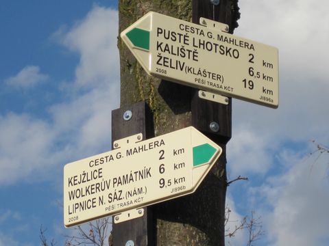 Už několikrát jsem se zmínila, že Gustav Mahler byl veliký milovník přírody a nadšený turista – proto také byla v jeho rodišti a kraji jeho předků vyznačena tato cesta, která, jak jsme zjistili během následujících dvou dní, se těší velkému zájmu turistů. Nemůže být pro nás lepšího zjištění! Začíná u Wolkerova památníku, tři a půl kilometru od Lipnice, v místě, které je pro vyznavače čistých ideálů životních a zdravého pobytu v přírodě hodno zastavení a zamyšlení.