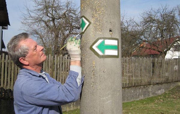 S péčí jsme obnovovali značky a odstraňovali překážející křoví a nálet, aby bylo značení dobře viditelné.