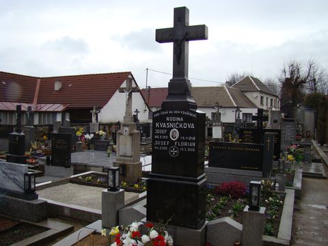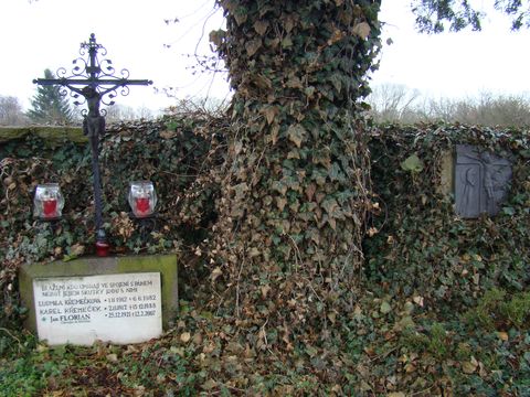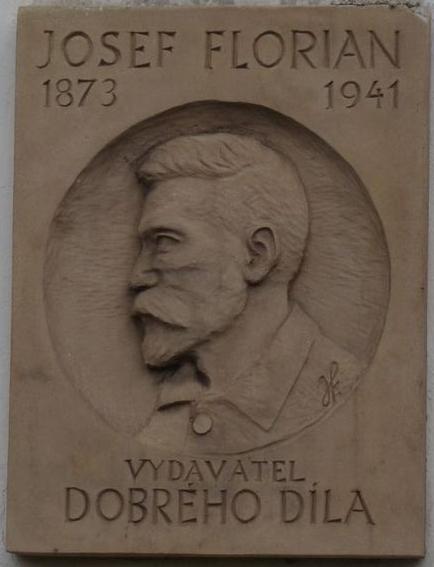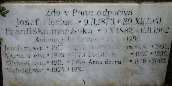 Zde odpočívá Josef Florian s manželkou Františkou a jejich sedm dětí – Joachim, Marta, Metoděj, Eva, Michael, Františka a Anna a také Josefova sestra Antonie, která u nich žila a starala se o prodej knih.