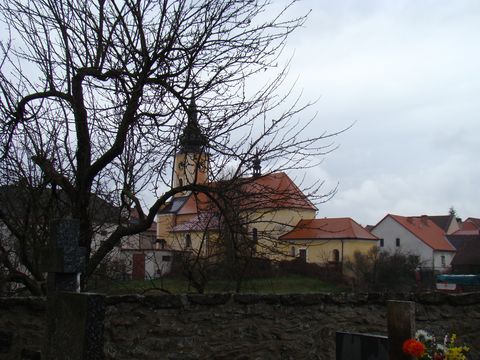 Ze hřbitova je pěkný pohled na staroříšský kostel Všech svatých,