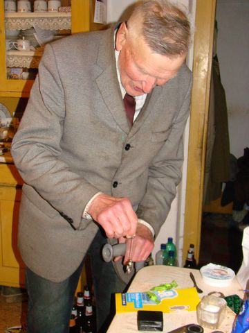 a vyprávěl o rodičích a sourozencích, dozvěděli jsme se, že téměř všichni hráli na varhany – Metoděj byl dokonce varhaníkem u sv. Markéty v Břevnově a Gabriel dosud hraje ve staroříšském kostele – všichni vyřezávali, věnovali se malbě a grafice, uměli cizí řeči. Jejich otec nebyl příliš nakloněn tomu, aby se ženili či vdávaly, proto vstoupily do manželství jen čtyři ze dvanácti dětí. Starý pán povídal o přátelích rodiny a věřte, že to byli úctyhodní lidé, velmi uznale se vyjadřoval o knížeti Schwarzenbergovi (otci dnešního senátora), který jim mnohokrát pomohl z finanční nouze. Defilé slavných jmen, přátel či spolupracovníků Dobrého díla, bylo úžasné, pan Florian byl potěšen naším zájmem, a tak byla radost vzájemná. Přáli jsme si vidět domácí oltář a i to se nám splnilo.