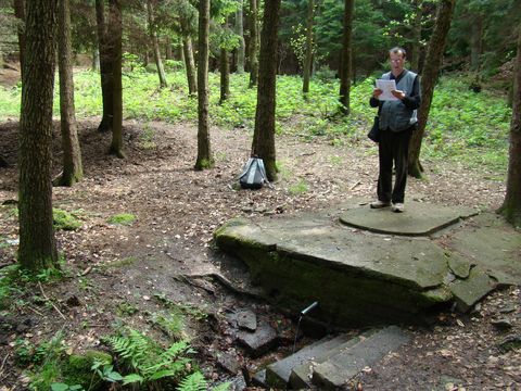 Vysoký kámen je přírodní památka blízko Jihlavy (rozloha asi 12 hektarů, výška 630–660 metrů n. m.), navštěvovaná v každé roční době kvůli krásným lesům, ve kterých se dá hodiny chodit a odpočívat. Je tu množství studánek a u pěti z nich jsme se zastavili, aby je, předem vyčištěné, děti slavnostně otevřely. Trasa vedla z Antonínova Dolu, první zastavení bylo u studánky Zahrádkářské.