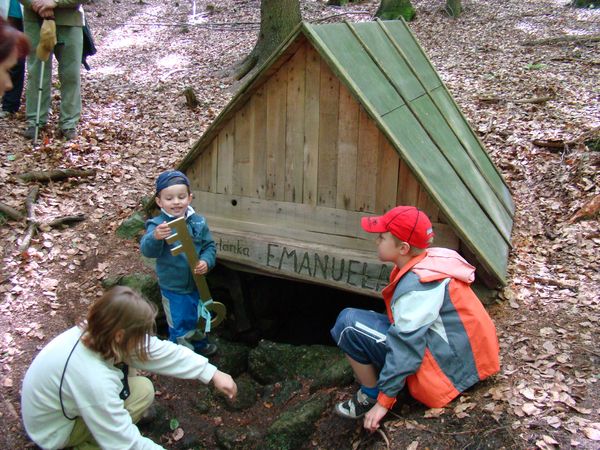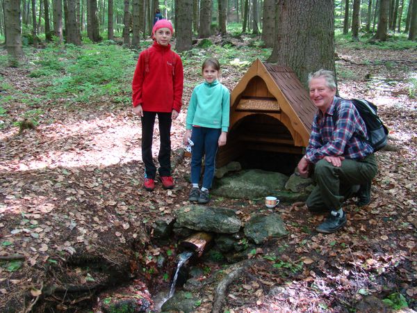 Ve svahu pod Vysokým kamenem jsou prameny, které domácky nazýváme „Hobzovy studánky“, protože Karel Hobza několik z nich krásně zastřešil a dvě z nich pojmenoval po svých vnučkách Anetce a Elišce. Obě děvčata byla přítomna a právem náležitě hrdá… Není mi vlastní rozněžňovat se nad dětským pískáním na flétničku, ale musím se svěřit, že když malá Eliška s velkou vážností kulatila tóny, ty se dotkly studánky, pohladily listí a dozněly v korunách stromů, uvědomila jsem si krásu okamžiku.