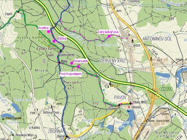 Do mapky jsem zakreslila trasu i studánky, třeba přijdou vhod.