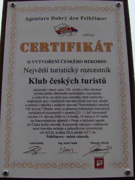 Představovat pelhřimovskou agenturu Dobrý den není jistě třeba – ve středu 26. května 2010 potvrdil její prezident a komisaři, že směrovník na náměstí před Turistickým informačním centrem je největší v České republice, že je zapsán v České knize rekordů a má proto právo stát v Pelhřimově, městě rekordů.