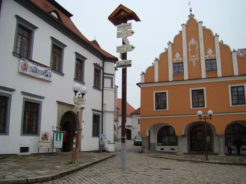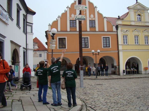 Na směrovníku je tabulka místního názvu Staroměstské náměstí, červená značka sděluje v posledním údaji na směrovce, že z toho místa je 189 kilometrů na naši nejvyšší horu Sněžku, modrá dovede vytrvalce po 276 kilometrech na Třístoličník, směrovka se zelenou značkou uvádí jako cíl nejvýchodnější bod České republiky, trojmezní obec Hrčavu, vzdálenou ze Staroměstského náměstí 506 kilometrů a žlutá udává směr k našemu nejzápadnějšímu městu Aši, 242 kilometrů. To jsou hodnoty úsměvné, pro turistu nemající praktického významu. Proto ústřední vedení KČT předalo směrovník Miroslavu Markovi z agentury Dobrý den a starostovi města, kteří rozhodli, že jeho místo bude na pelhřimovském náměstí, kde jako kuriozita přiláká jistě množství zvědavců.