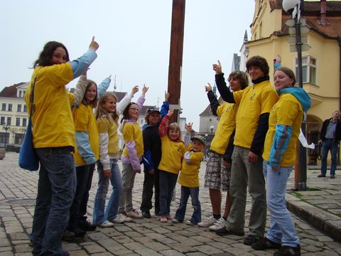 Slavnostního předání do Pelhřimova se zúčastnily děti z hněvkovického turistického odboru Šlápoty,