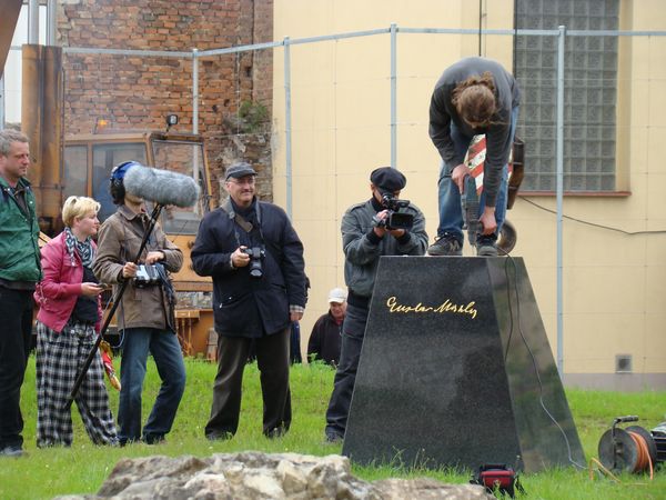 Když jsem 1. června přišla s foťákem před jedenáctou do parku, už tam byl nachystaný autojeřáb i odborníci pro usazení sochy na podstavec a začali se scházet lidé, kteří si nechtěli nechat ujít tuto výjimečnou historickou událost. Pohyboval se zde filmový štáb režiséra Pavla Štingla, který natáčí film o vzniku Koblasovy sochy velkého skladatele a dirigenta, jenž prožil dětství a mládí v Jihlavě, a začalo narůstat všeobecné napětí z očekávání. Snažila jsem se z té hory fotek vyrobených v bázni, že mi něco unikne, vybrat ty pravé pro vás, kteří jste u téhle zajímavé podívané nemohli být.