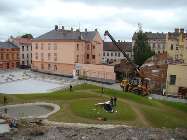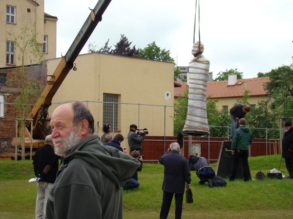S napětím jsme sledovali práce při instalaci sochy, bylo zapotřebí několika pokusů, než bylo všechno, jak má být.