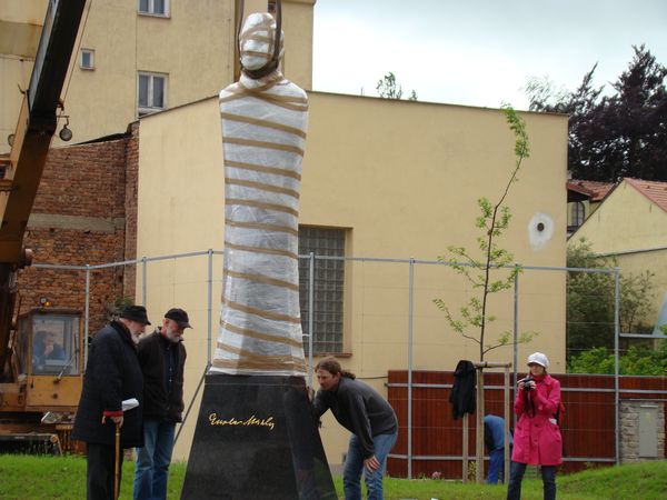 Poslední dva snímky zatím ještě zahalené sochy, která už je ode dneška naše…