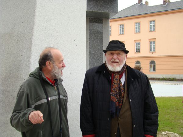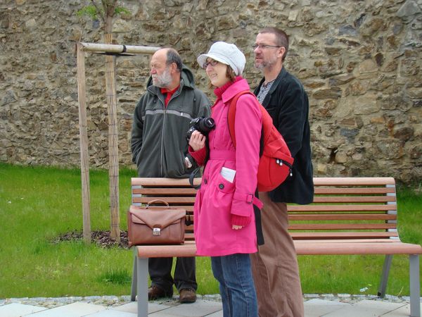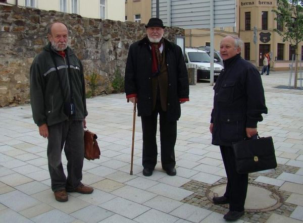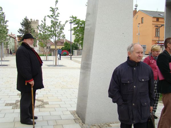 Tady je snímek lidí, jejichž intenzivní práce v minulých letech vyústila ve dnešní slavnostní den – předseda Společenství, grafička Eva Bystrianská a jihlavský archivář Petr Dvořák: