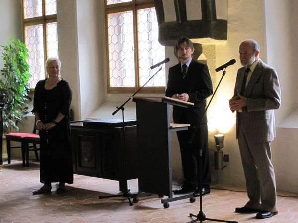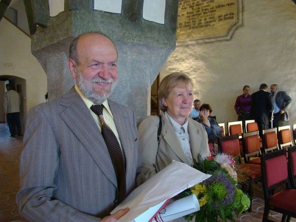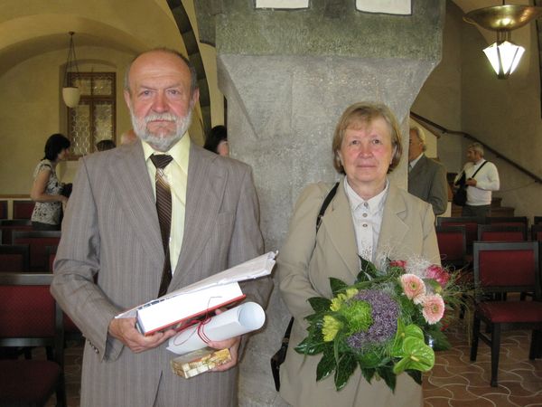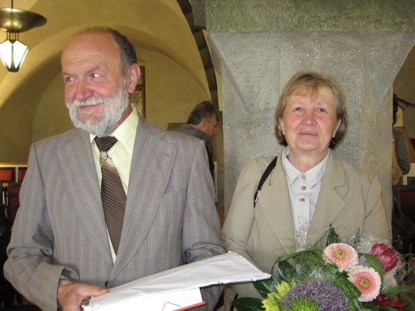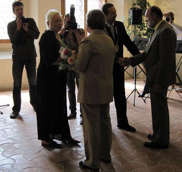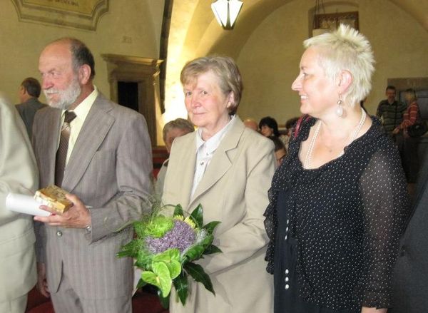 Po slavnostních proslovech předali primátor a náměstkyně, akademická malířka Irena Wagnerová, manželům Poukarovým Cenu města Jihlavy.