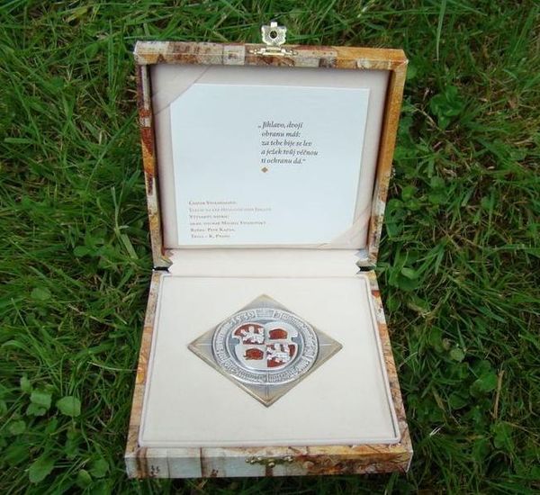 Závěrem obrázky pamětního listu a medaile, z jejichž udělení Poukarovým máme upřímnou radost my, členové Společenství.