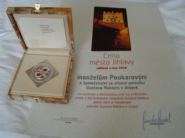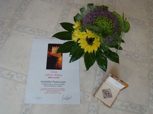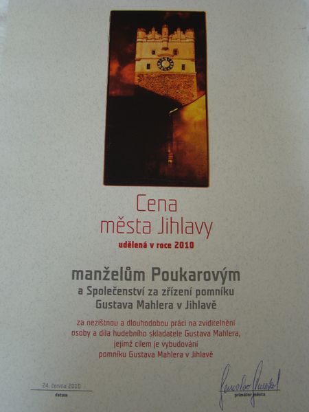 Byl čtvrtek, ale pro nás mimořádně slavnostní den, protože v gotickém sále jihlavské historické radnice předávali nejvyšší představitelé města ocenění třem osobnostem, které významně ovlivnily veřejné dění a zasloužily se o dobrou pověst města. Považujeme za velikou přízeň osudu, že jsme mohli být při tom, když manželé Olga a Josef Poukarovi přebírali nejvyšší ocenění za svoji nezištnou a dlouholetou práci ve prospěch jedné z největších osobností jihlavských, hudebního skladatele a dirigenta Gustava Mahlera.