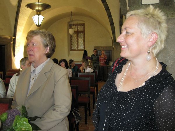 A znovu fotky s Irenou Wagnerovou – tentokráte už zase v pracovním rozhovoru o podrobnostech při nadcházejícím slavnostním odhalení sochy Gustava Mahlera v den 150. výročí narození skladatelova, tedy 7. 7. 2010, což je středobod minulého i současného konání.