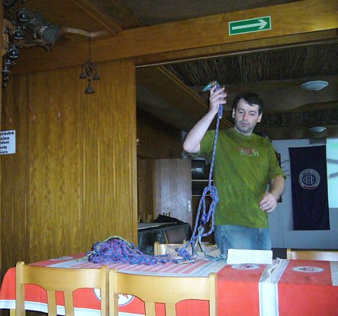 Hudba a tanec byly logickým a kultivovaným vyústěním krásného dne, nedělní ráno nás zastihlo svěží, natěšené a dychtivé dalších očekávaných radostí. Nejdřív ale zase trochu teorie – předseda odboru vysokohorské turistiky Mgr. Jiří Nováček si pro nás připravil povídání o bezpečném pohybu v horách a po ledovci. Jako lektor VHT a zkušený aktivní turista nás všechny zaujal svými informacemi a vstřícným projevem.