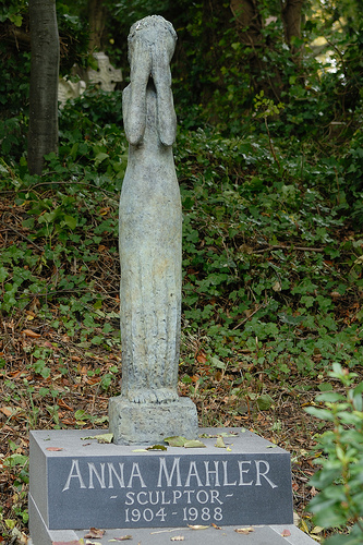 Dcera Gustava Mahlera zemřela v roce 1988, socha na hrobě je vytvořená podle jejího návrhu.