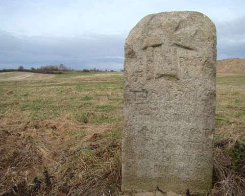jehož text je pro nás nečitelný, ale vyhledala jsem pověst, která se k němu váže: Alois Noha, mladý, krásný a šikovný kolář z Mysliboře poznal na svých vandrovních cestách Martu z Onšova, slíbil jí manželství a s jejími penězi odjel domů do Mysliboře, zařídil si dílnu, užíval si a na milou Martu zapomněl. Ona ale nečekala nečinně a vydala se z Onšova za ním. Když viděla, že ze svatby nebude nic a peníze se jí nevrátí, nasbírala jedovatých hub, smaženici předložila milému Álovi a jak se tak dívala na něj, v bolestech a křečích umírajícího, uvědomila si, že život pro ni už nemá cenu a šla se přiznat ke svému hroznému činu. Kat ji oběsil na šibenici na kopci Oslednice u Telče.