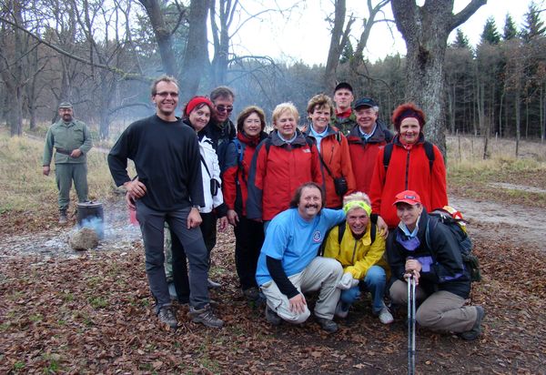 a rychle spěchali k Sokolovně, odkud odjížděl autobus do Řásné, což byl začátek naší dnešní trasy, po níž jsme podle kategorizace pořadatelů v závislosti na délce vybrané trasy jako „ztracenci-lučištníci“ kráčeli lehkým krokem pod pomyslným velením Jana Hvězdy z Vícemilic až ke krvavému rybníku Boru. Na tomto pochodu, kde je možné vybrat si z osmi tras, se prolíná minulost s přítomností a je velmi snadné nechat se unést fantazií, zvláště, když se neví, jak tehdy vlastně bitva husitů s pány z Hradce dopadla… Víme ale přesně, že se odehrála 7. listopadu 1423, tedy je to na den přesně 587 let, co se na této trase vyskytovali kopiníci, pavézníci, cepníci, sudličníci, lučištníci, vozatajové i harcovníci a v lesích bylo hóóódně rušno…