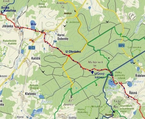 Trasa: Telč – Mysliboř – Homolka – Urbanov – Ořechov – Vývozní rybník – Moučkův kopec – Rozsíčky – Dyjice – Telč = 25 km