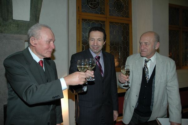 Věřím, že naše budoucnost bude samý úspěch a žádná překážka, že budeme všichni zdraví a dočkáme se ve svornosti stého výročí založení odboru Čeřínek a poté každý z nás při plné aktivitě turistické i své velebné kmetské stovky – to vše nám přáli hosté – na následujícím obrázku jsou to oba nejvyšší předsedové KČT a jihlavský primátor